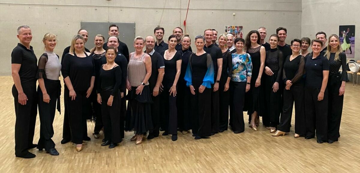 Bei generell guter Stimmung und nach dem obligatorischen Gruppenfoto ging es weiter mit dem Warm-up mit Eintanzen und Basicfolgen. Der eigentliche Sichtungsteil bestand aus einer Basic-Runde mit Langsamer Walzer, Tango, Slowfox und einer anschließend getanzten Endrunde. Bei der Sichtung unterstützte Landeslehrwart Axel Zechlin.