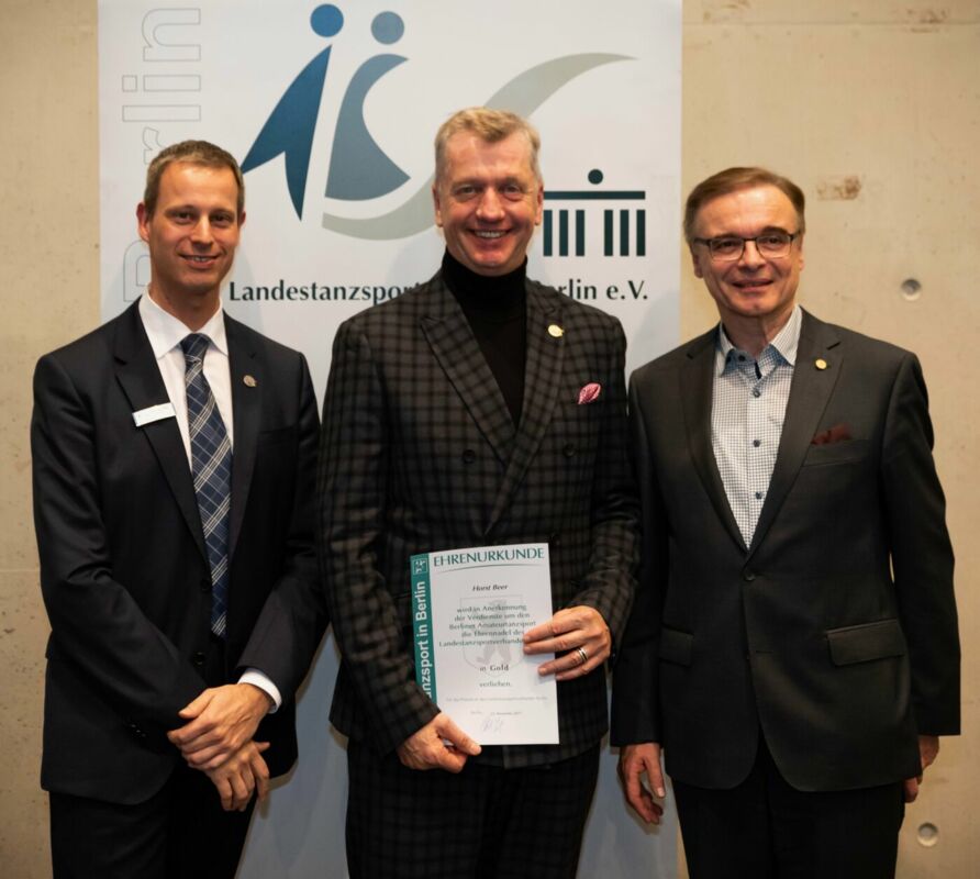 Horst Beers überragende tanzsportlichen Erfolge mit seiner Frau Andrea wurden auf nationaler Ebene mit dem „Silbernen Lorbeerkranz“ bzw. „Goldenen Tanzschuh“ gewürdigt. Außerdem erhielt er 2017 den DTV-Award als Trainer des Jahres, im Dezember 2023 auch die DTV-Sportplakette. Der LTV Berlin überreichte ihm bereits am 23. November 2017 die höchste Ehrung in Form der goldenen Ehrennadel (Foto - mit LTV-Präsident Thorsten Süfke - links - und LTV-Ehrenpräsident Franz Allert - rechts).