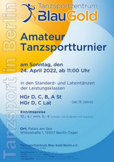 Das TSZ Blau Gold lädt am Sonntag (24. April) zu offenen Turnieren in das Tegeler Palais am See ein.