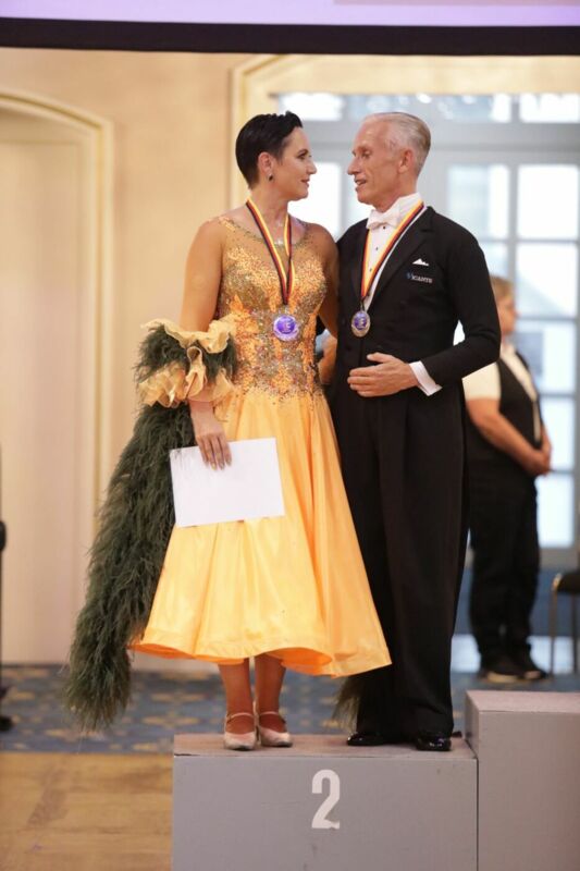 Tolle Stimmung herrschte in der Reithalle für die Teilnehmenden des Rising Stars Turniers der Senior III Standard. In diesem Turnier waren am Morgen 135 Paare gestartet. Auch hier wies die Startliste überwiegend deutsche Paare auf und das Beste kommt aus Berlin: Stefan Jacob/Margit Stiebritz (btc Grün-Gold der TiB v. 1848) tanzten sich in der Endrunde in allen fünf Tänzen auf Platz 2 und gewannen damit in diesem Turnier die Silbermedaille.