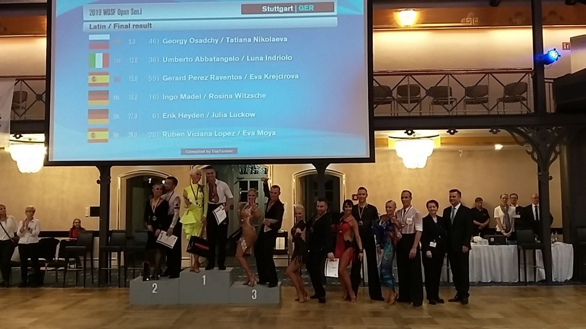 Bei ihrem Einstand in der WDSF OPEN SENIOREN I Latein bei den German Open Championship verfehlen Ingo Madel/Rosina Witzsche (Blau Silber TSC) nur knapp das Treppchen: Mit Platzziffer 18 zu 15 zu Platz Drei entgeht ihnen in diesem Jahr noch die Bronzemedaille.