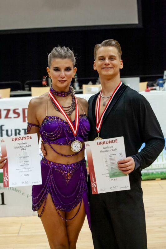 Illia Kulinich/Talita Bittner (Blau-Silber TSC) waren bestes Berliner Paar im Meisterschaftsturnier der Hauptgruppe B, die im Gesamtturnier Platz 2 erreichten. Frederik Hoffmann/Leona Dehling konnten im engsten Duell (um Platz 2) des Tages die Silbermedaille gewinnen und das Blau-Silber-Trio auf den drei ersten Plätzen der B-Klasse