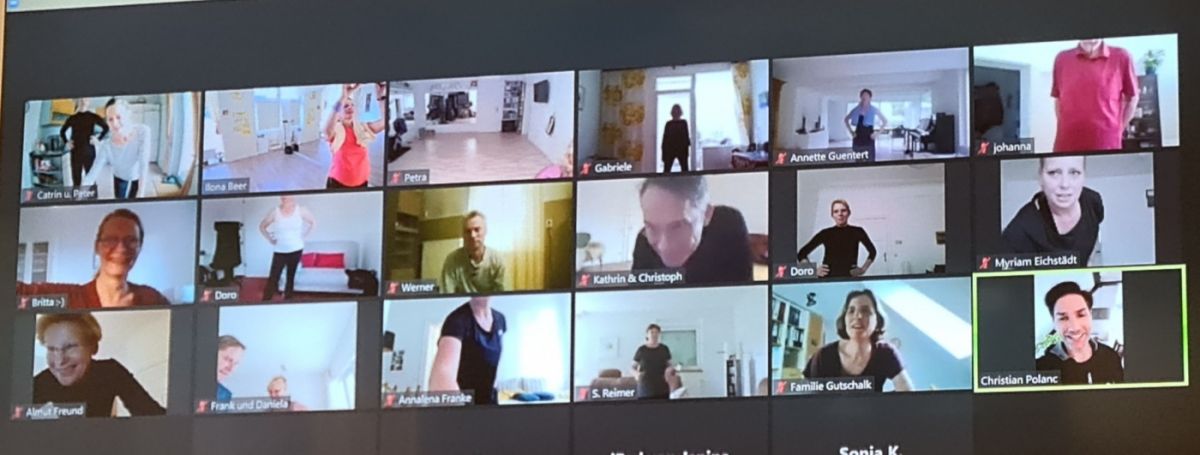 Am Montag abend startete die Online-Workshop-Reihe des Landestanzsportverband Berlin "Lern' doch mal kennen..." mit einer 90minütigen QiGong-Doppeleinheit, die Sebastian Kaliszczyk anleitete. Am Dienstag abend (18. Mai) folgte dann "dancit", eine vom Let's dance-Star Christian Polanc kreierte Tanzfitness für Tänzer*innen. Ilona Beer, die das Angebot koordinierte und durchführte, hatte den TV-Star auf einen kurzen "Besuch" eingeladen und so schaut er am gestrigen Abend digital vorbei (siehe Foto).
