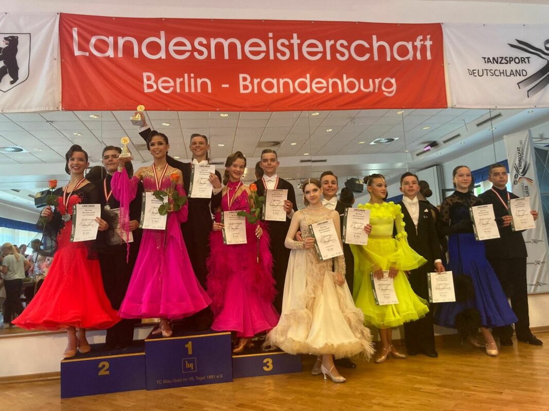 Am Sonntag fand die Berliner Meisterschaftssaison 2023 ihr Ende mit den letzten Entscheidungen im Jugendbereich. Es galt noch die Landesmeister in den Standardtänzen der Spitzenklassen von Junioren I bis Jugend zu ermitteln. Dazu traf sich der Tanzsportnachwuchs beim VfL Tegel und tanzte bei sommerlichen Temperaturen um die Medaillen.