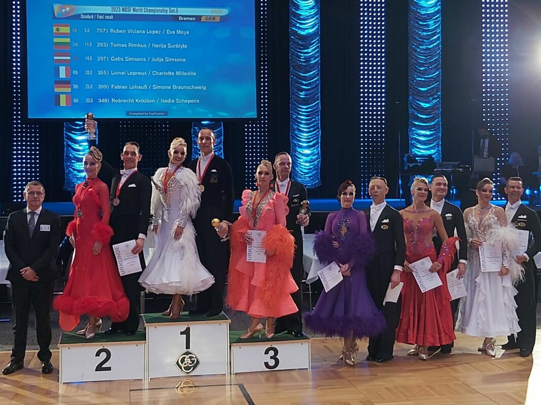 Fabian Lohauß/Simone Braunschweig tanzten sich in Bremen am späten Freitagabend in das WM-Finale 2023. Sieben Monate nach der letzten WM (2022) im italienischen Rimini war das Paar vom Spandauer Askania TSC erneut bestes deutsches Paar und unterstrich eine Woche vor der DM sein absolutes Top-Niveau. Bereits im Semi-Finale waren sie einziges deutsches Paar, tanzten eine herausragende Runde, wie auch viele Expert*innen rund um die Fläche im Congress Bremen feststellten, und qualifizierten sich dadurch für die Endrunde (in der sechs Nationen vertreten waren). Dort wieder von den vielen Zuschauern im Hansesaal angefeuert, tanzten sie sich unter die Top5 der Welt.