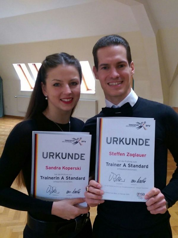 Mit Sandra Koperski & Steffen Zoglauer hat Berlin zwei neue Trainer A Standard. Die Beiden haben im vergangenen Jahr ihre Ausbildung im DTV absolviert und am vergangenen Wochenende im niedersächischen Braunschweig die Prüfung abgelegt und bestanden. Herzlichen Glückwunsch!