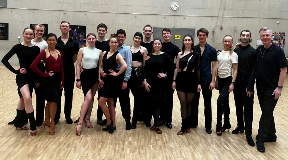 Zum offenen Gruppentraining des Landeskader Latein (Foto) waren acht Paare anwesend, von denen fünf in den neuen Landeskader aufgenommen wurden und zwei bis drei weitere Paare werden aufgrund von positiven Ergebnissen in den nächsten Wochen diese Kadergruppe noch ergänzen. Thema in diesem Training war die Samba.