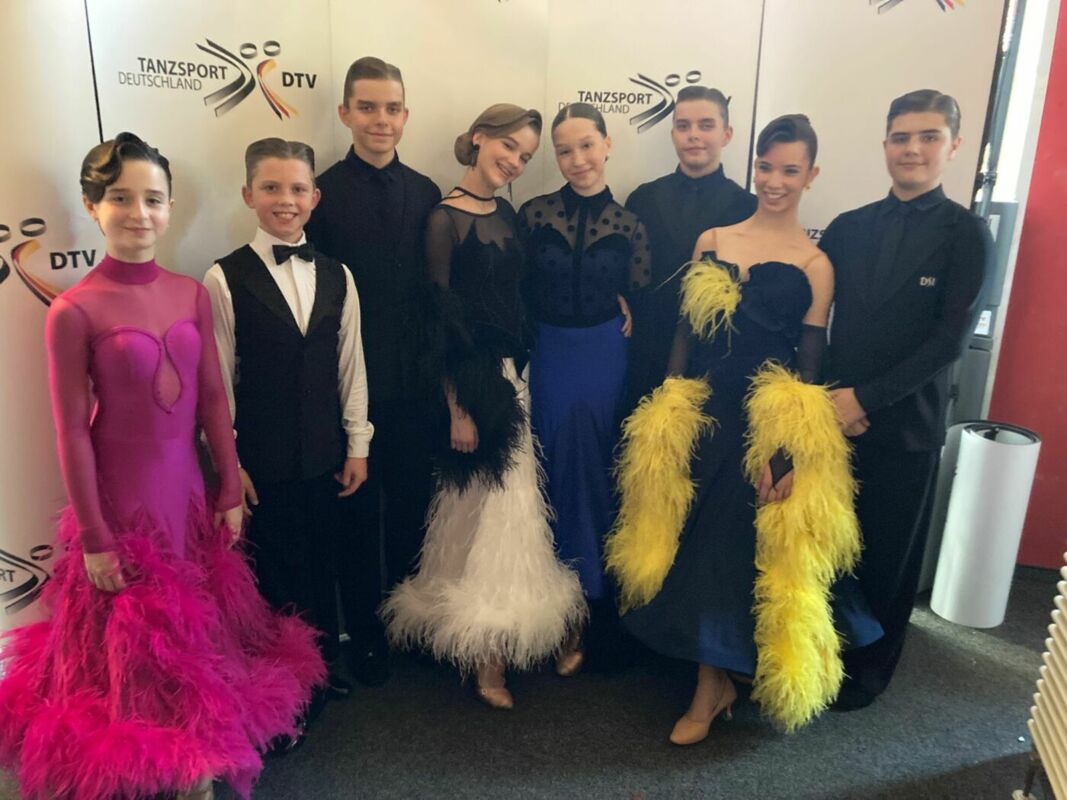 Das Turnier der Juniioren I B war aus Berliner Sicht das erfolgreichste Turnier. Zunächst konnten sich alle vier Berliner Paare (Foto) im starken Feld für das Semifinale qualifizieren. 2 Paare durften sich dann sogar über ihre erste DM-Finalteilnahme freuen: Viktor Waitz / Vladislava Yushkevich (Tanz Akademie) wurden mit Platz 6 etwas unter Wert geschlagen. Antonino Nowak / Sofia Hovhannisyan (OTK Schwarz-Weiß) freuten sich über ihren 5. Platz im Finale.