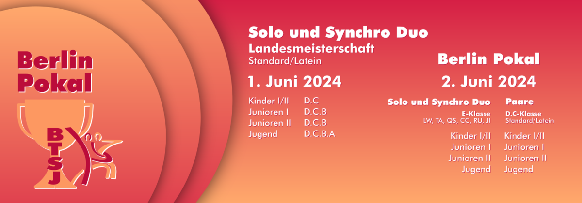 Am folgenden Tag (2. Juni) wird darüber hinaus erstmalig der BTSJ Berlin-Pokal veranstaltet, in dessen Rahmen Turniere der Kinder I/II, Junioren I, Junioren II und Jugend in den Startklassen D und C, Standard und Latein durchgeführt werden. Außerdem finden Solo und Synchro Duo Turniere der E-Klasse (LA/TA/QS/CC/RU/JI) in den Altersklassen Kinder I/II, Junioren I, Junioren II und Jugend statt.