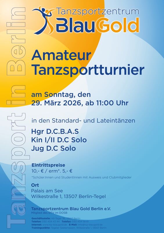 aufgrund der Startmeldungen ergeben sich die folgenden Startzeiten für das Turnier am 29.03.26 beim TSZ Blau Gold Berlin: