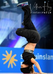 Sieben der elf gemeldeten B-Girls starteten am Samstagnachmittag mit ihrer Preselection, der Vorrunde. Vier Breakerinnen qualifizierten sich dabei für die Finalbattles. Im ersten Battle “KnockOut of Top 4“ trafen Melina vom Boston-Club Düsseldorf und Sona von der Tanzsportgemeinschaft Bavaria Augsburg erstmals nach der German Breaking Championship wieder aufeinander.