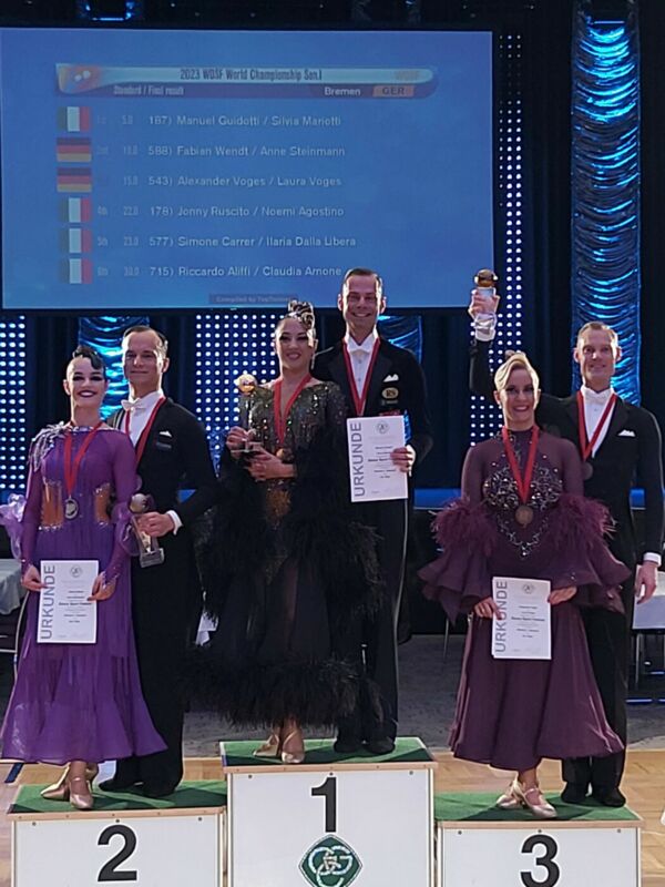 Zum fünften Mal in Folge heißen die Vize-Weltmeister der Senioren I in den Standardtänzen Fabian Wendt/Anne Steinmann (TSG Residenz Berlin). Wie vor sieben Monaten bei der letzten Weltmeisterschaft (2022) waren nur die Italiener Manuel Guidotti/Silvia Mariotti besser von den neun Wertungsrichtern gesehen worden. Und mit mittlerweile insgesamt sechs WM-Medaillensätzen (darunter auch einmal Gold) zählen die beiden Berliner zu erfolgreichsten deutschen Master-Paaren aller Zeiten.