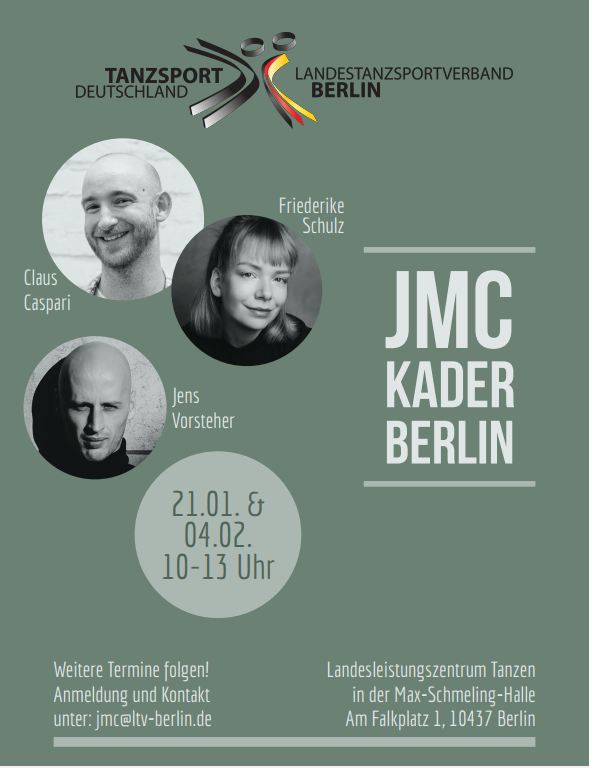 Im Sommer 2022 entstand die Idee, nach einigen Jahren der Unterbrechung, für die in den Berliner Tanzsportvereinen trainierenden Jazz und Modern/Contemporary-(JMC-)Tänzer*innen wieder einen Landeskader einzurichten. In den vergangenen Monaten gabe es hierzu unter der Koordination der Berliner JMC-Beauftragten Jessica Wölck mehrere Gesprächsrunden mit den Vereinen und möglichen JMC-Verbandstrainer*innen des LTV Berlin. Auf Basis eines Konzepts wird es nun in den kommenden Wochen erste Probe-Trainings im LLZ Tanzen geben. Dieses zentrale Fördertraining wird sich zunächst insbesondere auf die Chancen im Solo/Duo-Bereich konzentrieren - eine Ausweitung ist denkbar.