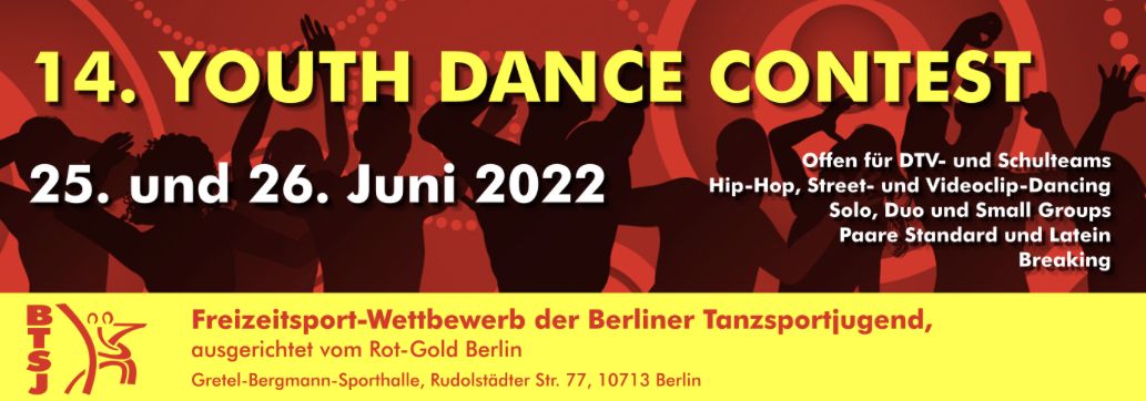Wir freuen uns auf zahlreiche Tänzer/innen und auch auf die erstmalig stattfindenden Breaking-Wettbewerbe, die der Ausrichterverein Rot-Gold Berlin implementiert hat!