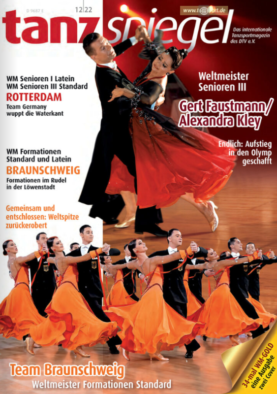 Zum Abschluss des Jahres 2022 gibt es eine Doppelausgabe, prall gefüllt mit 68 Seiten Tanzsport. Darunter - und deshalb findet man sie auch auf Cover Nr 1 - mit einem Rückblick auf die Senioren III-Weltmeisterschaft Mitte Oktober in Rotterdamm, wo die Berliner Gert Faustmann und Alexandra Kley Weltmeister wurden. Unter der Headline "An ihnen führte kein Weg vorbei" kann man die Tage und Stunden in Rotterdam noch einmal nachlesen.