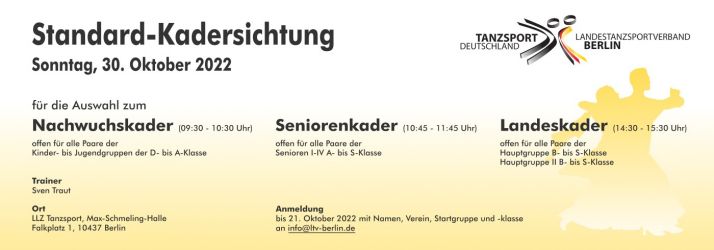 Am Samstag wurden in Frankfurt/Oder die Landesmeistertitel in den Standardtänzen für den Nachwuchsbereich vergeben. In den D- und C-Klassen von den Kindern bis zur Jugend sind dies die Ergebnisse des Jahres 2022:
