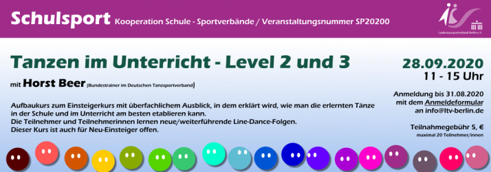Nachdem alle offenen Turniere der LTV-Mitgliedsvereine bis Ende September abgesagt waren, erfolgt seit Anfang Oktober eine vorsichtige Wiederaufnahme des Turnierbetriebs im Landestanzsportverband Berlin. Dennoch gibt es für die kommenden Wochen noch einige Turnierabsagen, nämlich u.a. die Turniere der Hallen am Borsigturm. Die beliebten Turniere im Tegeler Einkaufszentrum können unter den aktuellen Hygiene- und Abstandsbedingungen nicht durchgeführt werden und wurden daher vom Center-Management abgesagt. Ebenso sind die Turniere
