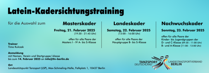 Auch für die jüngsten Paare ist das Turnierjahr 2025 in Berlin und Brandenburg gestartet - und dies gleich mit dem regionalen Saisonhöhepunkt in den lateinamerikanischen Tänzen: zu den gemeinsamen U19-Landesmeisterschaften der unteren Leistungsklassen hatten die beiden Landestanzsportverbände in den Tempelhofer Lindenhof eingeladen. An der Eythstraße und beim TTC Carat  sahen die Zsuchauer über 40 startende Paare und viele strahlende Gesichter bei den Siegerehrungen (auf dem Foto jene der Jugend C).